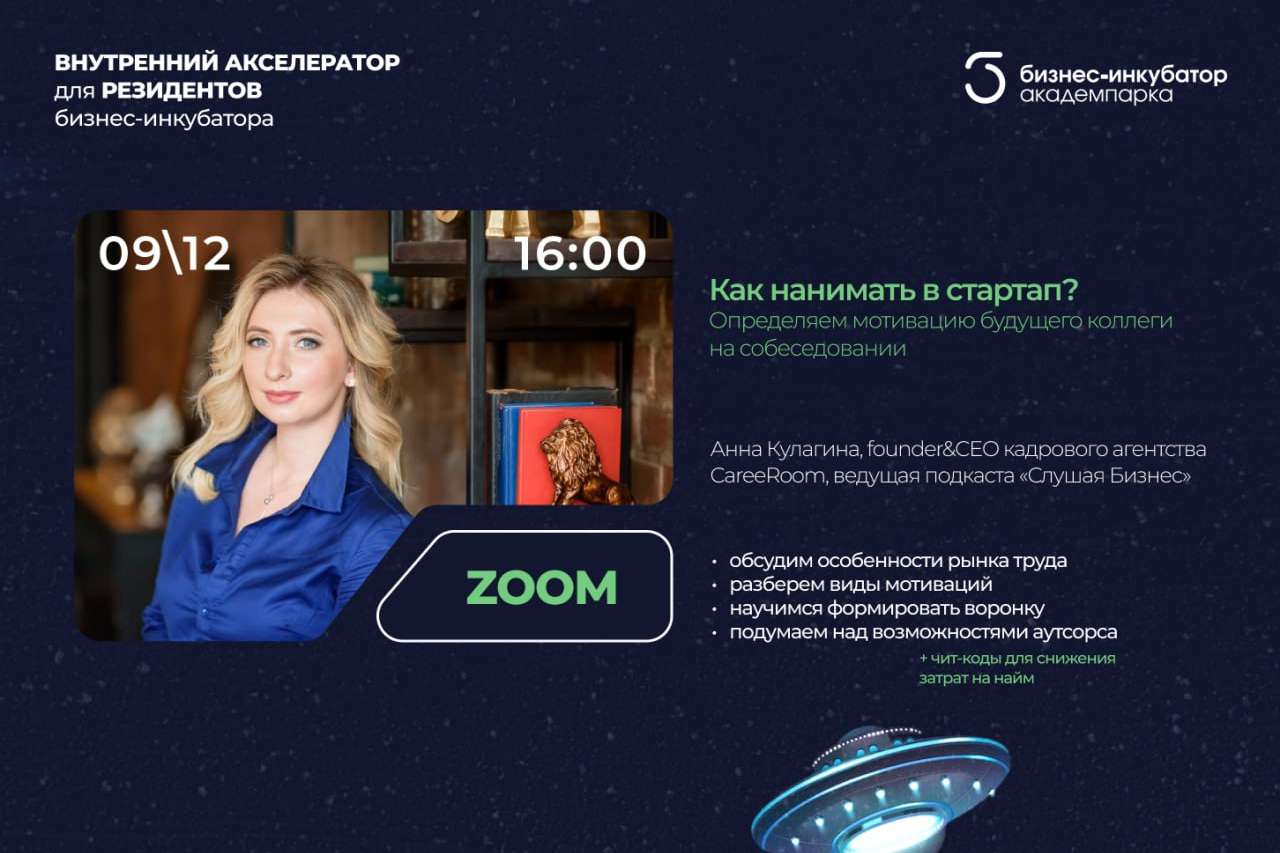 Приглашаем основателей стартапов и HR-специалистов на встречу с Анной Кулагиной, founder&CEO кадрового агентства CareeRoom. Вместе с Анной мы посмотрим на рынок труда и разберем тренды с точки зрения работодателей.
